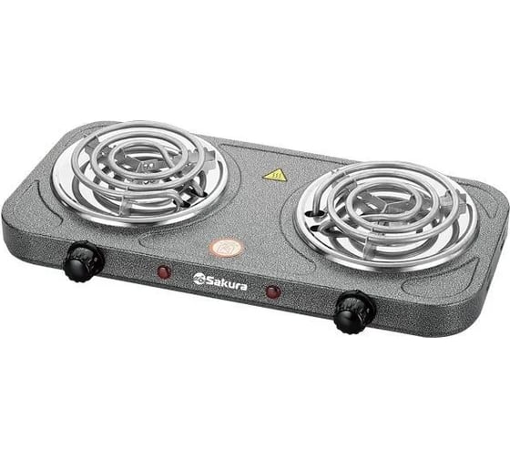 Плитка электро SAKURA ПЭ-03 2000Вт, 140/140мм, 2 конфорки/спираль, графит РТ-00068507