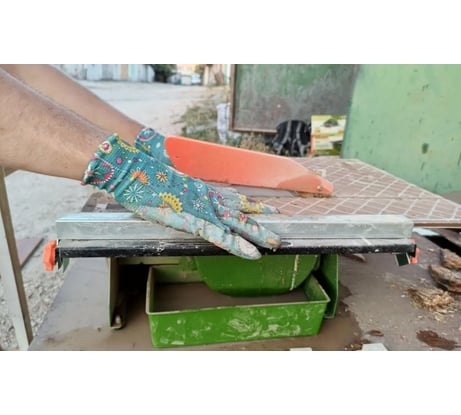 Мой девайс оказался с отломанной резиновой ножкой, пришлось заменить все 4. В остальном, недостатки у всех подобных аппаратов примерно одни и те же. - Надо сильно приноровиться, чтобы плитка на выходе не откололась. - Слишком маленькая рабочая поверхность, пилить плитку 20х60 уже танцы с бубном. Что говорить о более крупных габаритах. - диск из комплекта стоит денег , зачем его включать в комплект, если он все равно под замену ? Ведь очки же не кладут, хотя резать плитку без защитных очков я бы не стал. - неудобная и ненадежная фиксация упорной планки - в процессе работы она может отползти.