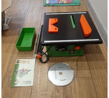 Плиткорез Procraft PF1000/180 представляет собой удобный в использовании электрический станок, который оборудован асинхронным двигателем мощностью 600 Вт. Его применяют для так называемого «мокрого реза» болванок из камня и плиток разного вида.