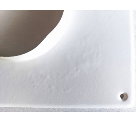 Пластина кривая, скрученная внутренними напряжениями. Покрытие краской ужасное, неоднородное, со следами подтеков с обеих сторон пластины. Одна из пластин пришла с вмятиной на фланце.