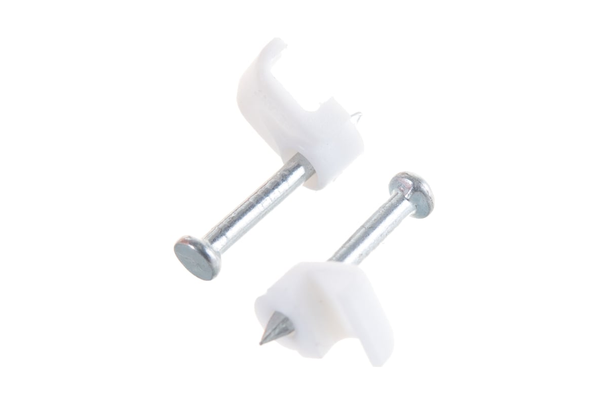 Плоский крепеж 5х2 мм с гвоздем предназначен для фиксации плоского кабеля к деревянной поверхности. Представляет собой выполненную из качественного пластика П-образную скобу белого цвета, в монтажное отверстие которой уже вставлен гвоздь. Скоба используется для мгновенного и надежного крепления проводов и кабелей к поверхностям стен, несущих конструкций и потолков. Гвоздь выполнен из закаленной стали, что позволяет закрепить его даже в плотной и твердой древесине без риска погнуть или сломать.