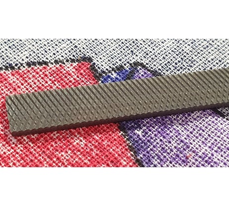 Надфиль имеет мелкую, аккуратную насечку. Ручка пластиковая, без острых краев, но не прорезинена. Инструмент предназначен для тонкой обработки металла и пластика. С поставленной задачей по зачистке заусенца справляется.
