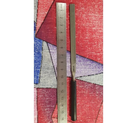 Данный надфиль имеет стандартную ромбовидную насечку, подходящую для обработки как металла, так и пластика. Ручка выполнена из гладкого пластика без анатомических изгибов, что подходит для кратковременной работы. Инструмент эффективно снимает материал, но требует периодической очистки щеткой от стружки. Для тонкой подгонки деталей и зачистки заусенцев его возможностей вполне достаточно.