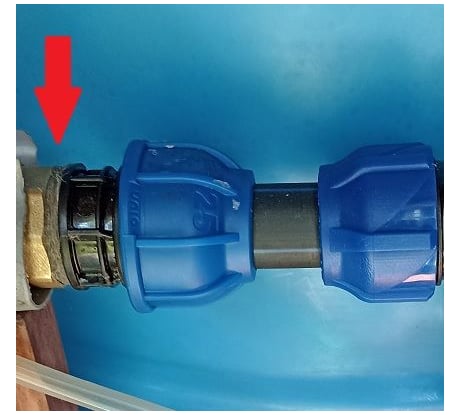 Для подключения накопительной ёмкости к насосу нужно было создать магистраль для соединения всех частей ПНД-деталей между собой. Муфта вошла в состав такой магистрали для соединения обратного клапана (латунь) и трубы ПНД. Потребовалось уплотнить место соединения, так как без него вода сочится.