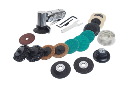 Пневматическая болгарка с комплектом насадок JTC 17 предметов 5005K пригодится для работы в небольшой автомастерской. Ее основное назначение - обработка различных поверхностей, в том числе металлических.