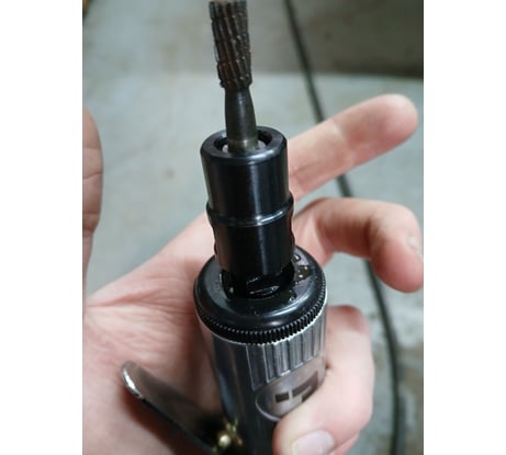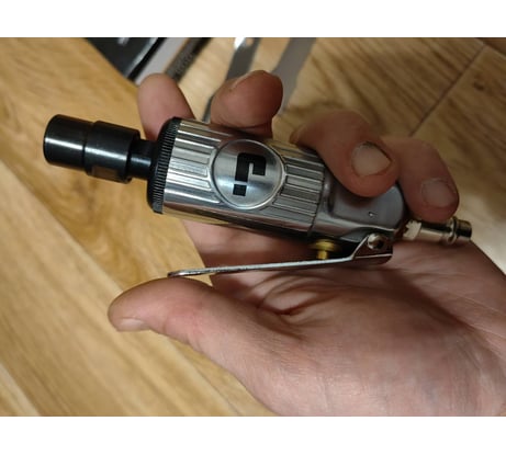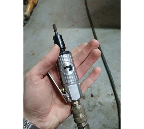 Отличная пневматическая шлифмашинка. Увесистая, хорошо лежит в руке, удобно работать. Докупил набор фрез для нее с хвостовиком 6мм. Металл, пластик грызет на ура.