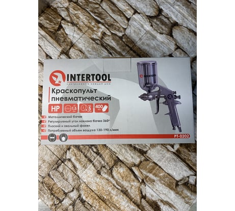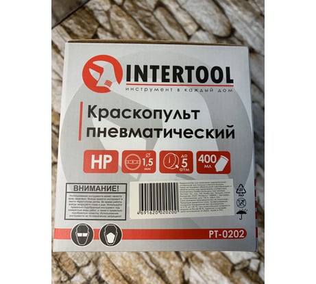 Отзывы о пневматическом краскопульте INTERTOOL HP, форсунка 1.5 мм, бачок 400 мл PT-0202