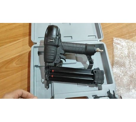 В деле ещё не пробовал. Инструкция идёт полностью на русском языке. В гарантийном талоне вписан серийный номер. В комплекте идёт масло для смазки ( пол флакона). На вид сделан добротно. После применения дополню отзыв. Пистолет классный. Но перед использованием лучше прочитать инструкцию. Брал для крепления ламината на стену. По инструкции давление на выходе из компрессора рекомендуется установить на уровне 4 кгс/см2, и далее настраивать прибавляя по 0,5 кгс/см2. Но поигравшись с настройкой у меня получилось, что оптимальное давление, при котором пистолет бы не пробивал насквозь замок ламината - 3,5-3,6 кгс/см2. Правда при таком давлении иногда бывает, что гвоздь забивается недоконца, но это не страшно, можно вытащить и забить по-новой. И ещё важный нюанс - пистолет необходимо держать перпендикулярно поверхности. Это важно. (Это мой первый опыт работы с таким инструментом).