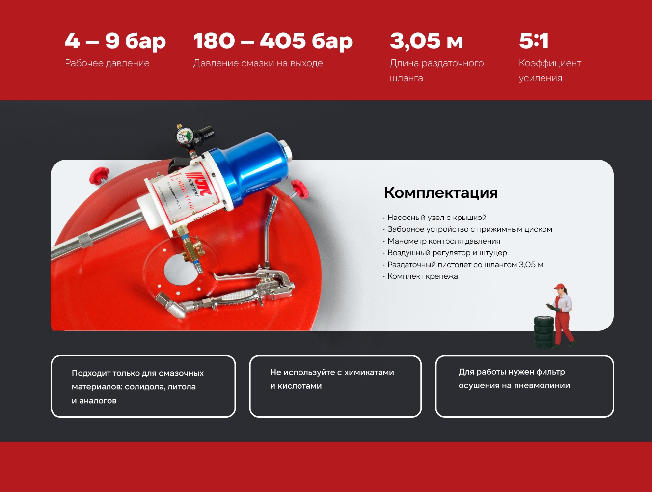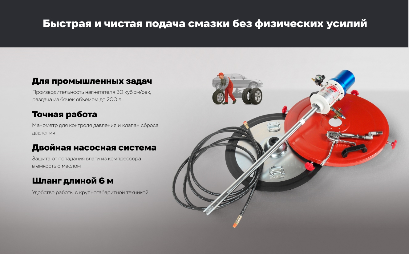 - Предназначена для раздачи смазки из бочек объемом 190 л;