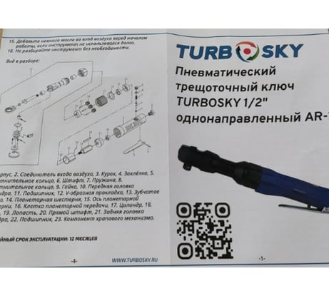 Отзывы о пневматическом трещоточном ключе Turbosky 1/2 однонаправленном AR-1 754