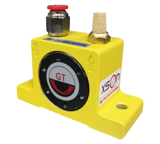 Пневматический вибратор турбинный XSON, рабочее давление: 2...6 бар, частота: 7 650...9 550 Гц, сила вибрации: 4 350...9 850 H, потреб. воздуха: 428...960 л/мин, раб. темп: -20…+150 С, присоединение: G 3/8 XSON-GT-40