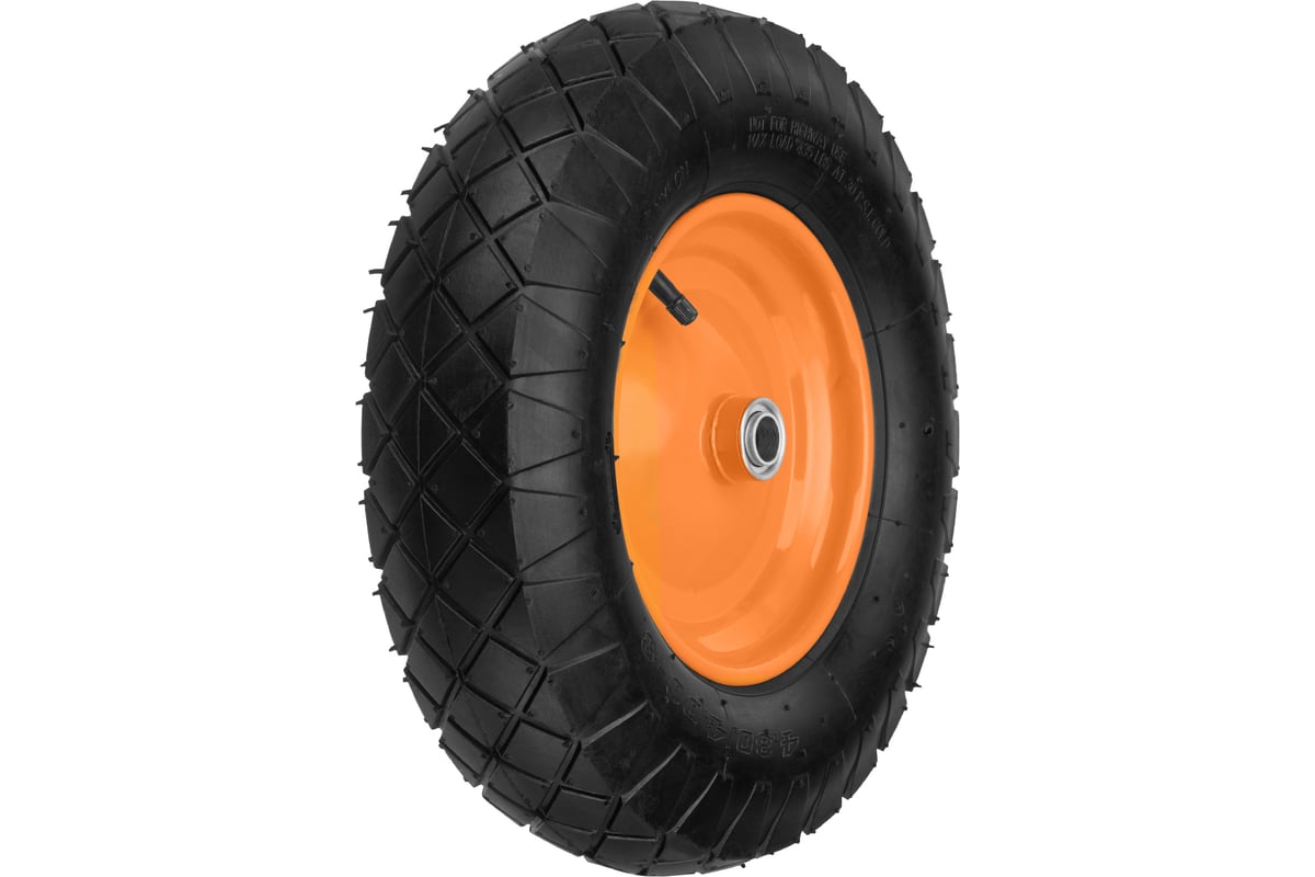 Пневматическое колесо 4.80/4.00-8 Palisad 68957 диаметром 390 мм, с длиной оси 80 мм и внутренним диаметром подшипника 20 мм, предназначено для перевозки грузов с помощью тачки. Подходит к тачке Сибртех 68936. Колесо с шариковыми подшипниками обеспечивает высокую проходимость и рассчитано на ежедневное использование на ровном или рыхлом грунте.