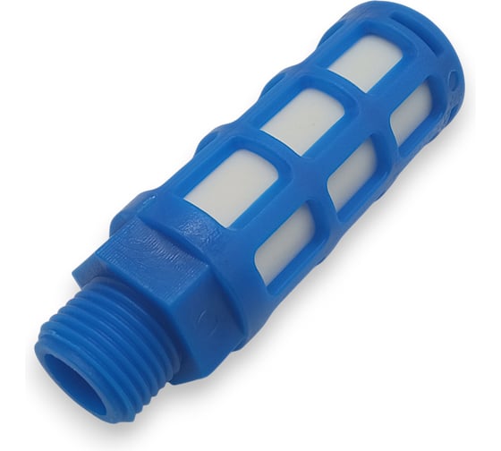 Изделие обеспечивает эффективное шумоподавление за счёт пористой структуры фильтрующего элемента, предотвращает попадание загрязнений в пневмосистему.