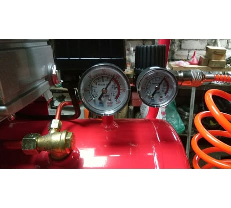 Покупался в гараж для бытовых нужд. Работает хорошо. Накачивает долго, т.к. один маленький поршень. Но для регулировки расхода есть исправный редуктор.