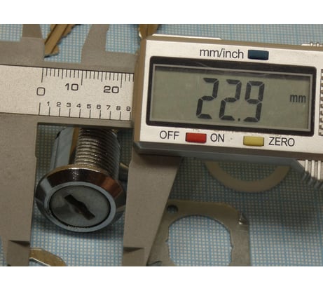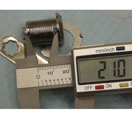 Выглядит качественно. 3 ключа. Размеры реально не те что в карточке товара, реально тут посадочный диаметр 17.8 мм, а длина резьбы 20 мм (расстояние от упора до язычка 21 мм - из-за шайбы ограничителя). Замки 70-0-920 и 70-0-916 по диаметру идентичны (я оба купил), разница только в длине резьбы. Ещё у этого замка отдельно шайба-стопор на 90 градусов, если её снять то язычок можно вращать на 360 градусов в обе стороны. Не понятно то ли фича, то старая модель (это модель выпуска 2024г, а у модели 916 выпуска 2025г нельзя убрать 90-градусный ограничитель поворота).