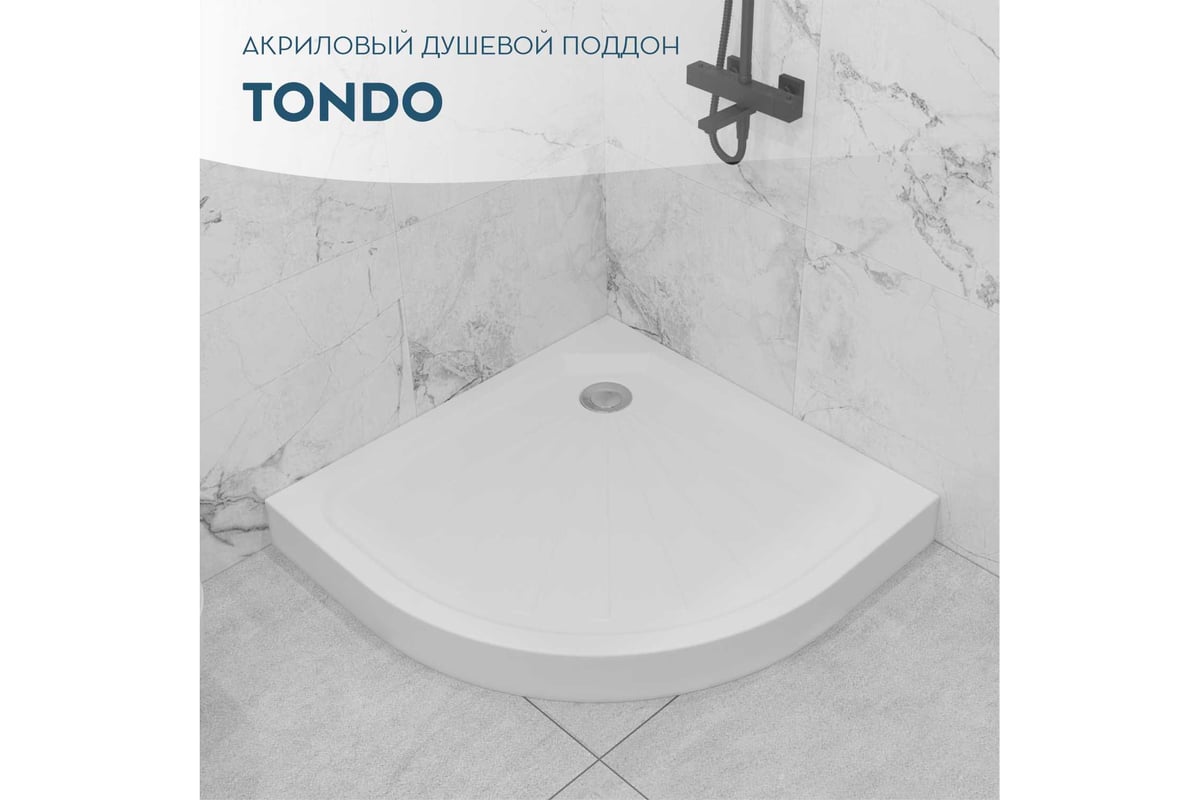 Акриловый полукруглый душевой поддон Tondo – прекрасное решение для небольших ванных комнат. Закругление лицевой части поможет эффективно и стильно использовать пространство ванной. Небольшой уклон в сторону слива и закругленные грани поддона позволят эффективно стекать воде и предотвращать ее переливание через борт.