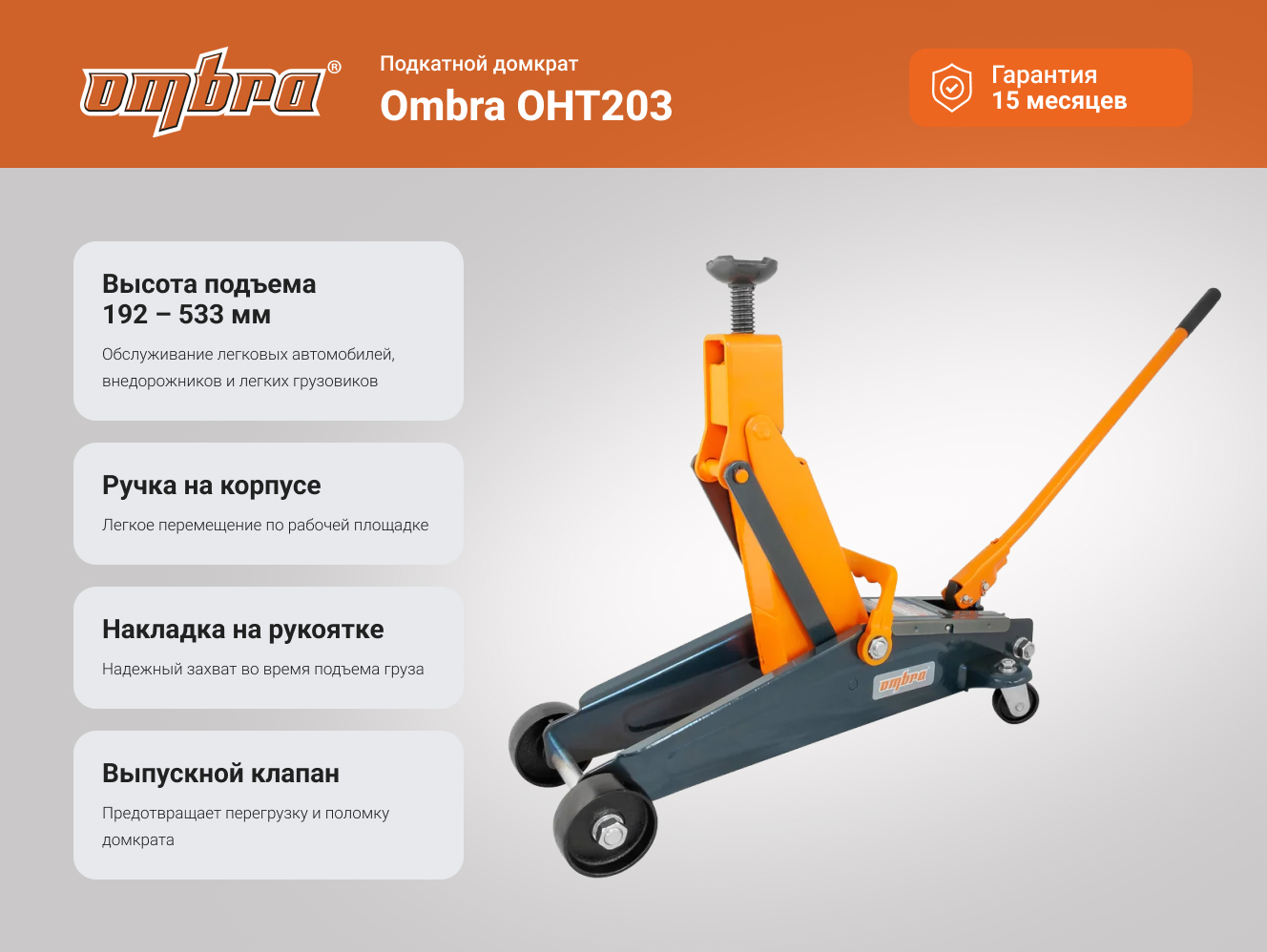Преимущества домкрата Ombra OHT203