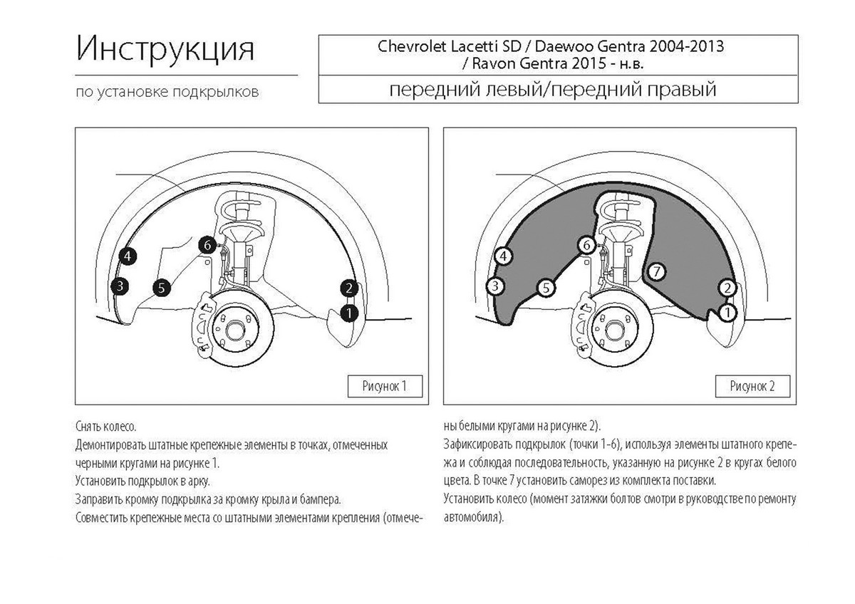Подкрылок передний левый Rival для Chevrolet Laccetti 41301001 предназначен для Chevrolet Lacetti седан 2004-2013/Daewoo Gentra II седан 2013-2016/Ravon Gentra седан 2015-н.в. Эффективно защищают кузов авто от негативного влияния агрессивных реагентов, образования наледи или налипания снега. Не теряет свои физические свойства в диапазоне температур от -45 до +45 градусов. Легко устанавливается, демонтаж других деталей не требуется.
