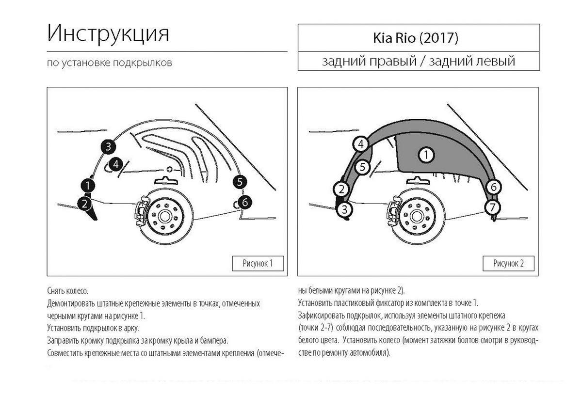 Подкрылок Rival задний левый для Kia Rio IV седан 2017-н.в., пластик, с крепежом, 42803007 защищает автомобиль от внешних негативных воздействий: реагенты, налипание снега, образование наледи. Подкрылок изготовлен из экологичного материала ПНД.