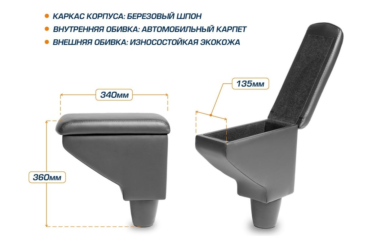 Подлокотник AutoFlex для Renault Logan 2018-, Sandero 2018-, Sandero Stepway 2018- 7470201 предназначен для комфортного расположения руки водителя при езде, а так же служит дополнительным бардачком для хранения мелких вещей. Придает законченный вид обустройству салона. Каркас подлокотника изготовлен из прочного дерева (березового шпона). Обивка выполнена из экокожи. Внутренний отсек полностью обит автомобильным карпетом.