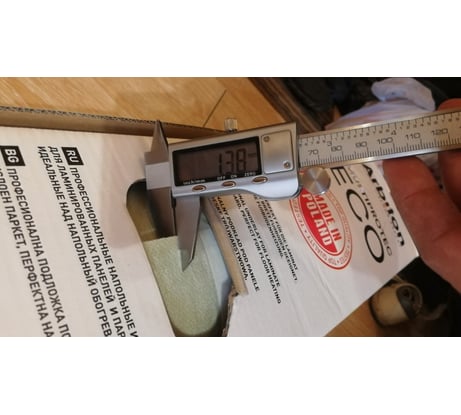 Толщина плавает (в пределах 0,3 мм), и немного искривлена при раскатывание (линия по лазеру уходит до 1 сантиметра на 5 метров по краю подложки), Есть с краю липкий скотч, но он отваливается. Скорее всего все недостатки связаны с неправильным хранением (вероятно стоя) и тем что подложка уже очень старая (хранится очень долго). Ну и доставщик рвет упаковку при доставке (картон прочный, но … в целом на подложку не влияет), но это вопрос к доставке - подложка под 13 килограмм рулон (и все инструменты за доставку дерут не мало). При укладке небольшие волны (на укладку кварцвинила не повлияло, вероятно просто старая)