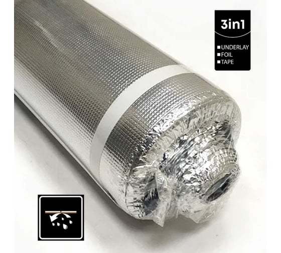 Основа подложки изготовлена из вспененного этиленвинилацетата (EVA) с плотностью 110 кг/м³, что придает изделию высокую упругость, долговечность и устойчивость к деформации под нагрузкой. Толщина 3 мм позволяет эффективно компенсировать мелкие неровности чернового пола (до 0,8 мм), создавая стабильное и ровное основание под ламинат, паркетную доску или другие плавающие покрытия.