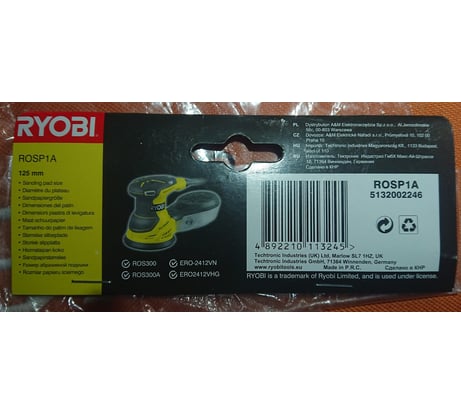 Отзывы о подошве шлифовальной ROSP1A (125 мм; 8 отв.) Ryobi 5132002246