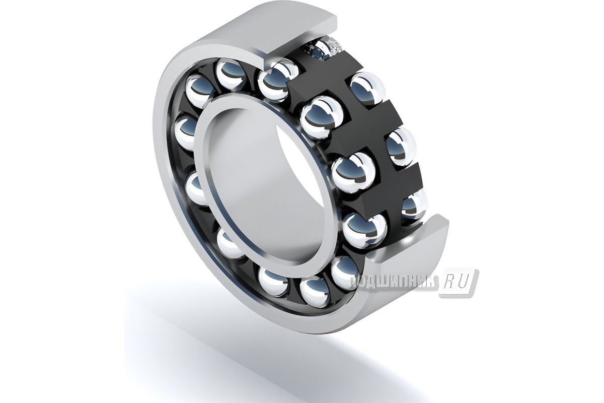 Самоустанавливающиеся шариковые подшипники (шарикоподшипники)имеют два ряда шариков со сферической дорожкой качения на наружном кольце. Эта особенность конструкции обеспечивает самоустанавливаемость подшипников, позволяет им выдерживать перекосы вала относительно корпуса. Поэтому такие подшипники особенно удобны в узлах, где возможны перекосы вследствие погрешностей при установке или из-за изгибов вала. Изделие выдерживает статический и динамический перекос, а также показывает отличную производительность при высоких частотах вращения.
