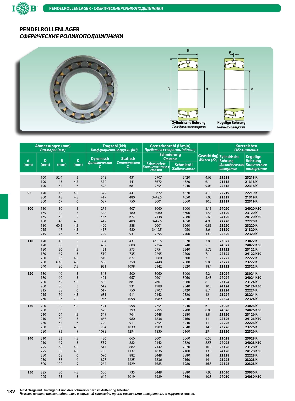 Технические характеристики подшипника ISB 22318CAW33ISB