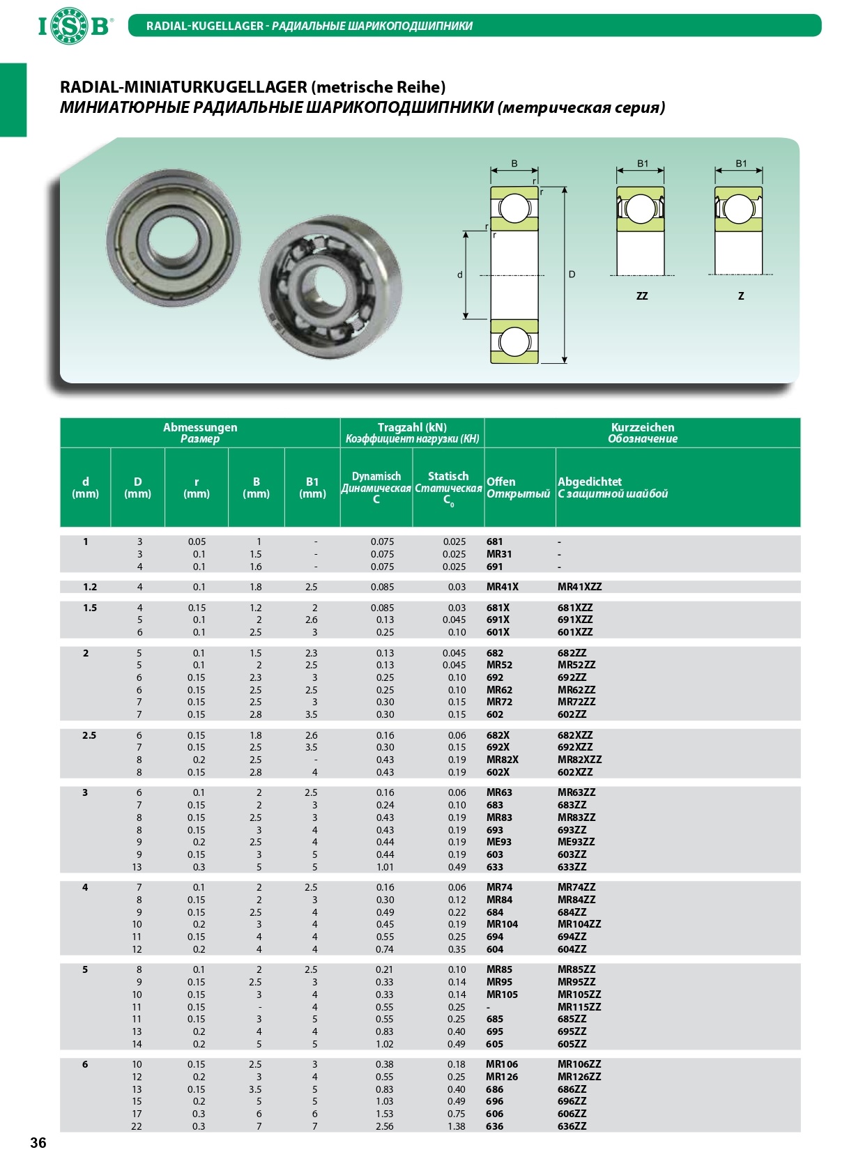 Технические характеристики подшипника ISB 682ZZISB