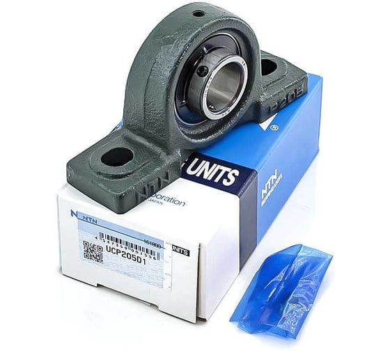 UCP - Подшипник с корпусом в сборе. Подшипник типа UC и подшипниковый корпус типа P - не разъемный, стационарный, фланцевый корпус с двумя отверстиями для крепежных болтов, выполненный из литого чугуна, снабжен ниппелем для проведения сервисных работ по замене смазки.