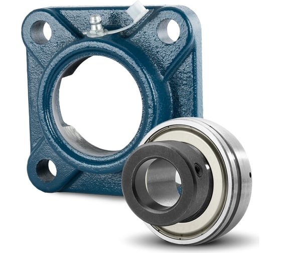 Подшипниковый узел состоит из шарикового радиального подшипника, который имеет удлиненное внутреннее кольцо для монтажа на вал и квадратного фланцевого корпуса с четырьмя отверстиями под болты. Крепление на валу осуществляется при помощи стопорных винтов под шестигранник. Монтаж в корпус происходит легко за счет сферической поверхности наружного кольца (самоустанавливающийся). Наличие специального отверстия в корпусе позволяет легко смазать подшипниковый узел. Изделие выполнено из высококачественных материалов, что обеспечивает надежность и долговечность.