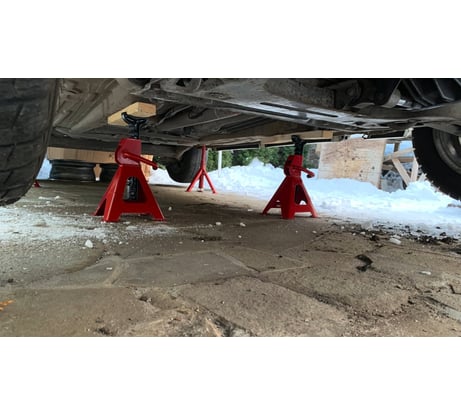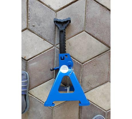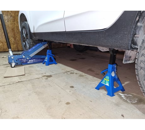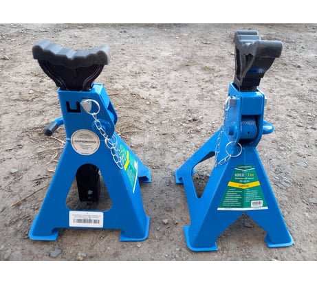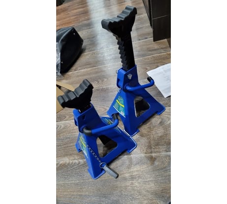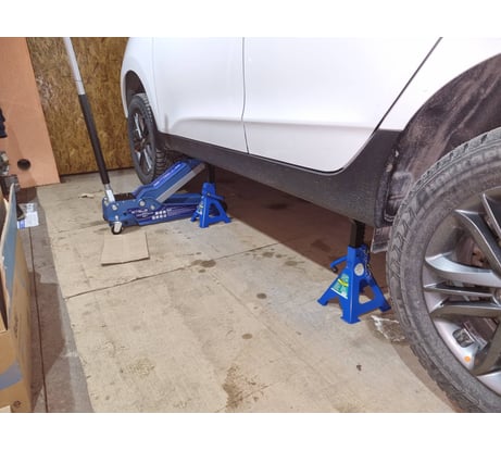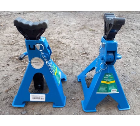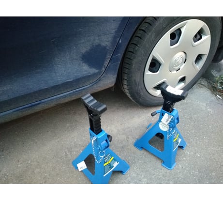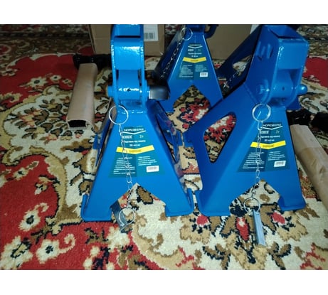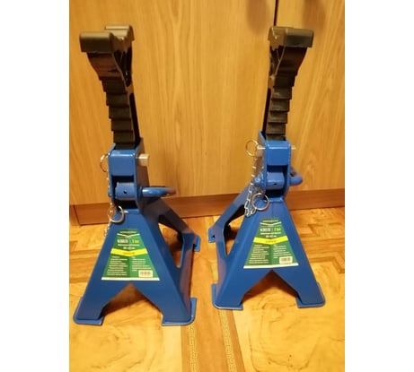 Пользуюсь ими уже больше 3 лет. Цена указана за одну подставку, а не за одну коробку (для тех кто не в курсе). До 44 см лучше подставки не нашел, пробовал разные. Эта конструкция самая надежная. Низ подставок на площадках, не продавливает пол. Есть палец-чека для блокировки случайного опускания. На опорной поверхности при продаже сразу есть защитная резиновая накладка. Машину ставишь не на голый металл, а это очень хорошо для порогов. Взял себе 4 такие подставки для подстраховки домкрата или чтобы вывесить авто полностью. Если поднимать выше 40 см , то это уже другие подставки нужны. Есть несколько подставок других фирм, но у них самый большой недостаток, нет блокировочного пальца. Пару раз при выставление они опускались.... Эти так не опускаются.