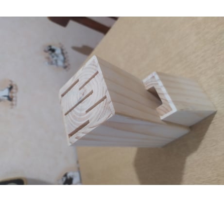 Попался экземпляр с сучками и гнильцой дерева, как результат - наличие сколов. Не снята фаска с ребер подставки.