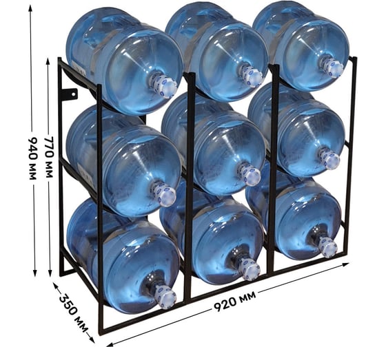 Подставка Metall78.ru для 9 бутылей 19 л, В770хШ920хГ350 мм, бутылочница, цвет чёрный ПДБС9-9005
