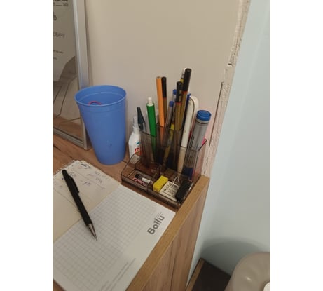 Изготовлена из высококачественного пластика. Имеет размеры 109х101,5х95 мм. Состоит из 5-ти отделений: двух - для канцелярских мелочей и трех - для пишущих принадлежностей. Между отделениями есть место под листочки для записей. Поставляется без канцелярского наполнения.