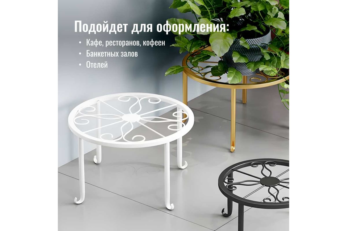 Столик подставка для растений, благодаря универсальным размерам (диаметр 30 см, высота 15 см), с легкостью впишется в любой стиль интерьера и станет прекрасным приобретением и подарком для тех, кто любит экспериментировать с дизайном.