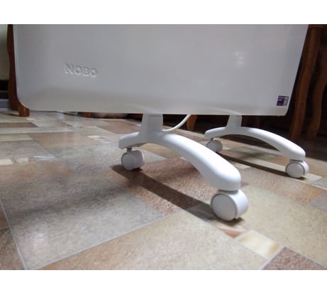 Многим кажется, что подставка под обогреватель, это что-то необязательное, так как она не входит в комплект вместе с обогревателем. На самом деле это очень важная вещь, которая помогает комфортней использовать обогреватель в помещении, с помощью подставки на колесиках не надо поднимать весь конвектор для того чтобы его переместить, достаточно прикоснуться и дать направление движения, например перемещение в другую комнату получается лёгким и никого для этого не надо просить помогать. Для пожилых родителей особенно важно, когда больные суставы, после операции поднимать тяжёлого ничего нельзя. Когда родственники приезжают, а они привыкли у себя в доме к более высокой температуре воздуха и жалуются, что им холодно ночевать, то подставка снова выручает, конвектор перемещается в комнату в дополнение к центральному отоплению и всем становится тепло и уютно. Фирменная подставка NOBO FS40 изготовленная специально для электрообогревателей NOBO высотой 40 см., будет лучшим решением, чем придумывать самому какое-то приспособление. Потому что, она качественно изготовлена, имеет крепкую и надёжную конструкцию, за счёт отдаления колёсиков достигается хорошая устойчивость конвектора к опрокидыванию. Колёсики легко вращаются, люфтов нет, на полу не оставляют никаких следов. Подставка состоит из металлических кронштейнов и пластмассовых деталей к которым крепятся пластмассовые колёсики диаметром 35 мм.. Пластмассовые детали не имеют посторонних запахов, сделаны из толстого крепкого пластика и для большей прочности имеют внутреннее оребрение, тем самым достигается достаточный запас прочности. Металлические кронштейны хорошо покрашены, по цвету не отличаются от цвета конвектора, хоть и имеют разные страны производства. Подставка собирается легко, все составные части вставляются друг в друга, ничего доделывать и допиливать самому не надо. Понравилось, что подставка продаётся в блистере, можно визуально проверить цвет, увидеть качество и проверить целостность всех частей. Ширина подставки составляет 26,5 см., высота - 45,5 см, на смонтированной подставке высота низа конвектора от уровня пола составляет 12,5 см.
