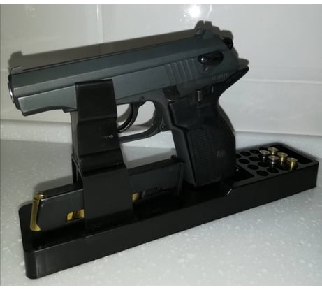 Брал для хранения в сейфе ИЖ 79-9т.Встает в подставку плотно, есть проем для двух магазинов отверстия для 16 патронов. Пришел в плотном целлофановом пакете.