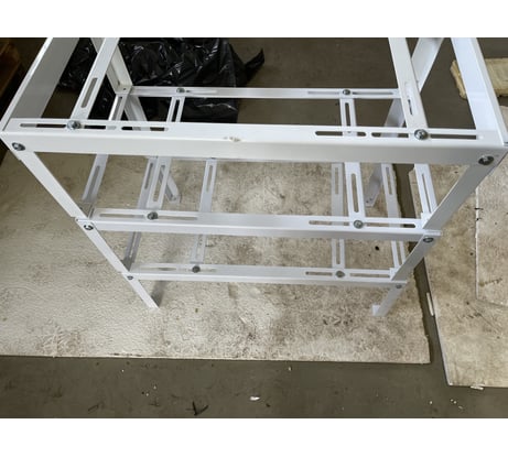 не соответствует фото\изображению, конструктив хуже (см фото); кривая ножка (брак) до окраса, ржа из под краски в паре мест; недоложили крепеж - 3 болта М8*25 5.8 (гайки есть), всего 4 шайбы из 16.