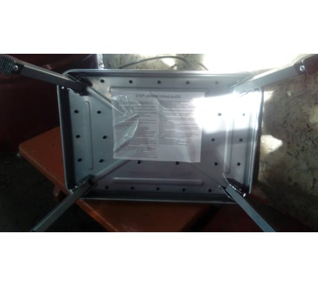 ВНИМАНИЕ! Заявленный размер 46,5х32х17см это размер по растопыренным ножкам(точкам опоры), площадка 38х26см (для меня это определяющий параметр)! Знал бы не купил бы! Не уверен, что выдержит 150кг. На моих 95кг уже основательно прогибается платформа и ножки разъезжаться начинают! Металл на ножках очень тонкий, а на опорах на ножки достойный. Заявлен вес изделия 3,2кг - 1,8кг по факту! "Платформа не скользит" - ЕЩЁ КАК СКОЛЬЗИТ!!! Не резинка там, а пластик!