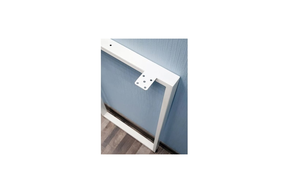 Ширина пластины для крепления в верхней части профиля: 40х50 мм. Толщина пластины в верхней части основания: 2 мм. Ширина верхней части подстолья: 450 мм. Ширина нижней части подстолья: 450 мм. Профильная труба: 50х25 мм. Цвет: белый матовый, RAL9016 Порошковая покраска. Максимально допустимая нагрузка: до 100 кг