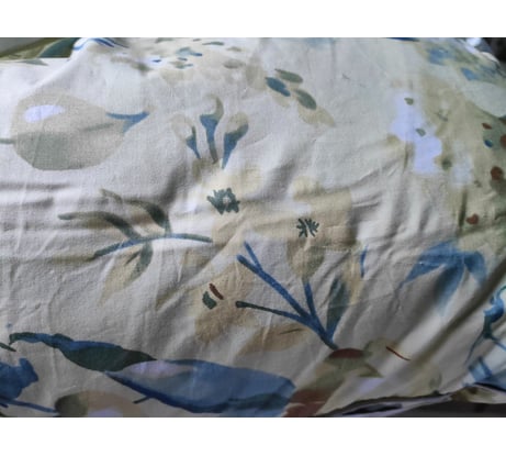 Подушка очень красиво выглядит. Материал изготовления – натуральный поплин с цветочным орнаментом. По краю подушка отделана атласным кантом.