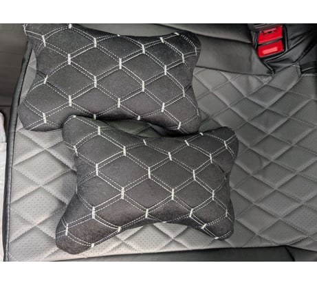 Подушка-подголовник на сиденье Nova Bright "косточка", черная с прострочкой серой ромбиками, 26x17см 48078424 ₽