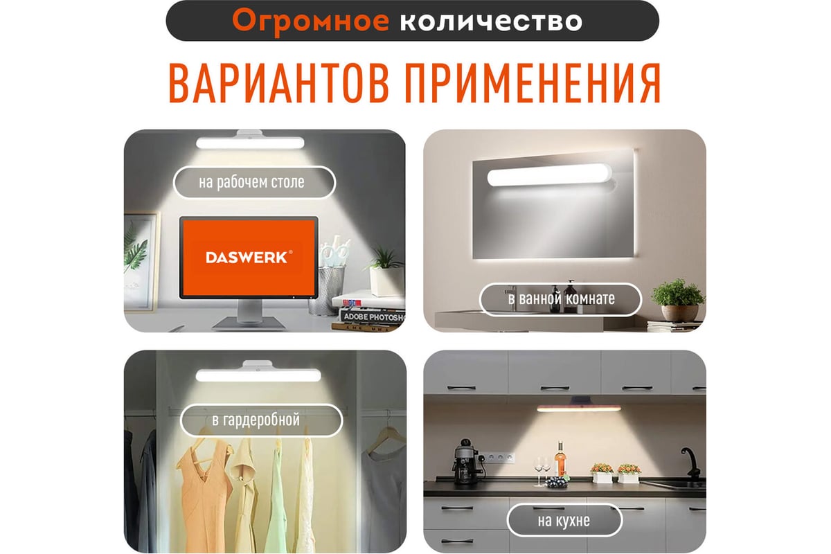 Отзывы о лампе-светильнике DASWERK портативная, с магнитным креплением, Led, 3 Вт, белый 238329