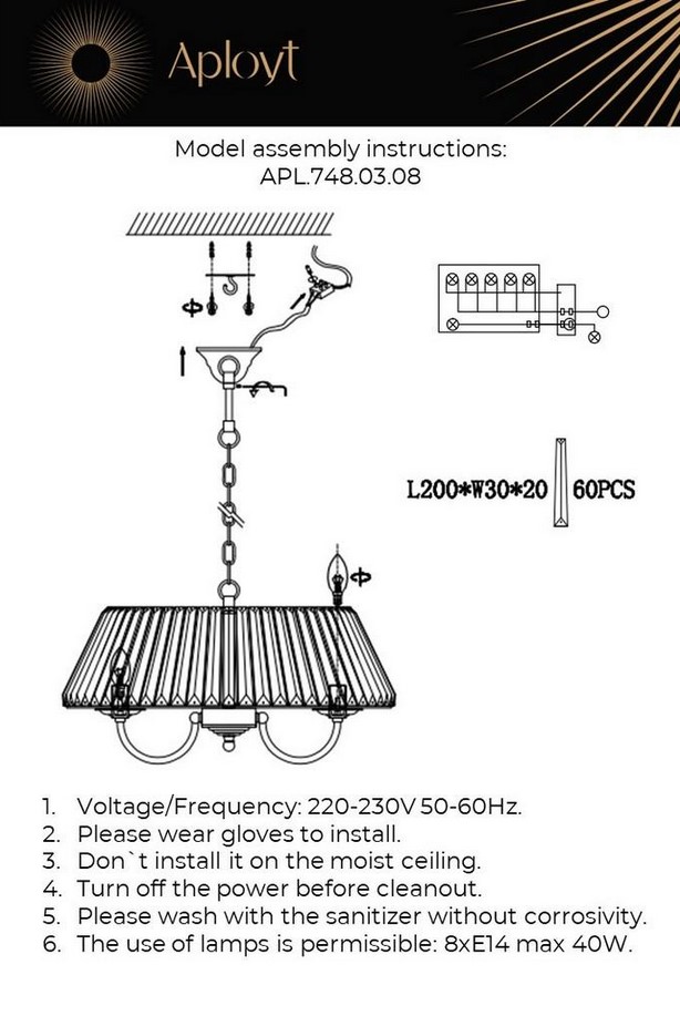 Расходные материалы для подвесной люстры Aployt APL.748.03.08