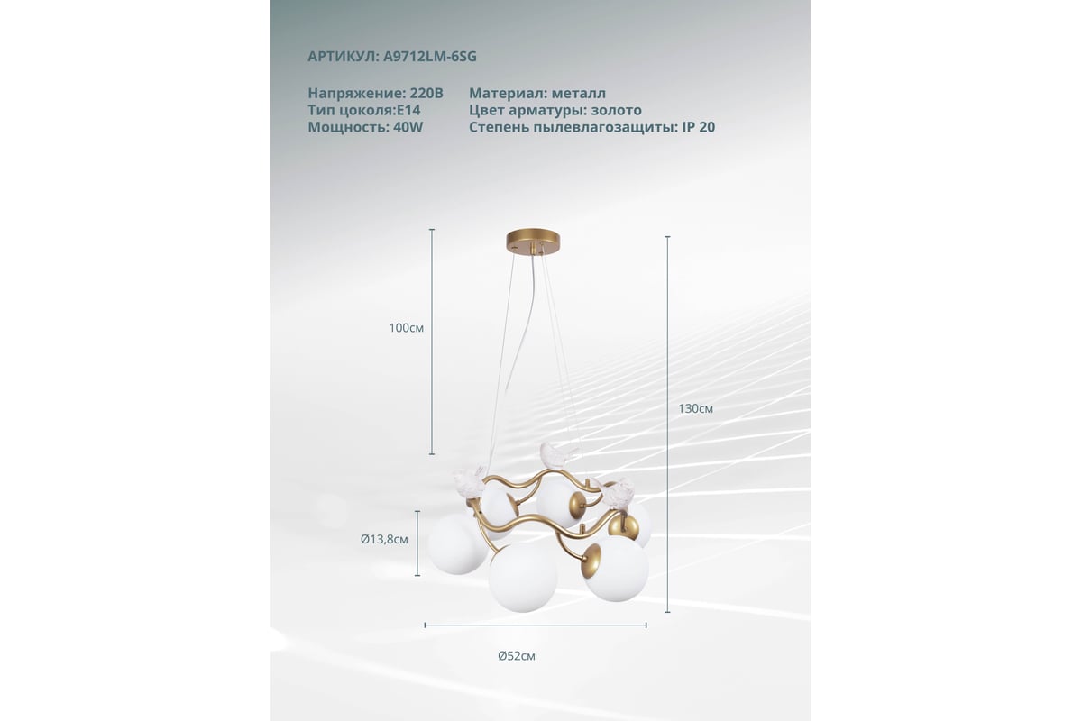 Подвесная люстра ARTE LAMP CAMOMILLA A9712LM-6SG