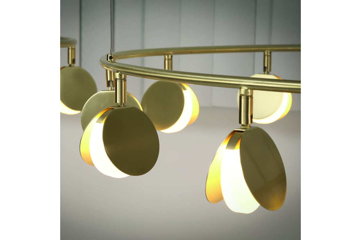 Коллекция выполнена в золотой отделке и доступна в нескольких размерах. Разные системы подвесок позволяют адаптировать светильник под задачи вашего интерьера. Самая большая трехъярусная композиция коллекции представляет собой три кольца разного диаметра с разным количеством светодиодов на каждом ярусе.