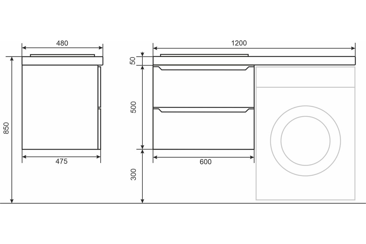 Подвесная тумба под стиральную машину uperwood Tanos 60 см, с раковиной Bruks 120 см, левая, белая 291021011 с выдвижными ящиками представляет собой функциональное, надежное и практичное решение, которое отлично впишется в любой современный дизайн ванной комнаты.