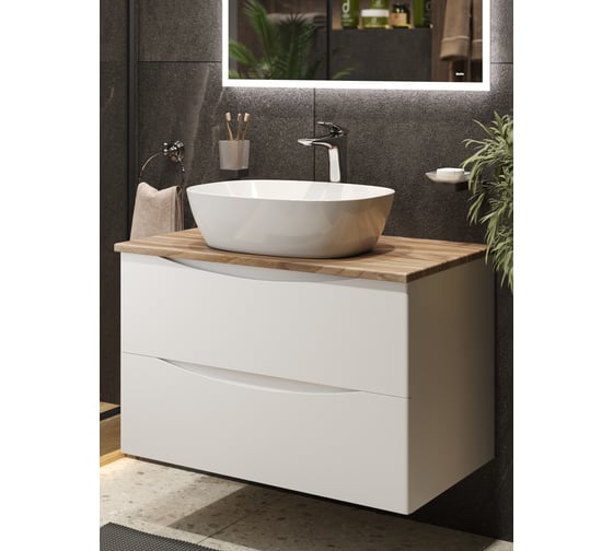 Тумба с раковиной 80 см для ванной подвесная белая матовая со столешницей под дерево BOND T09805-S56500 - стильное и функциональное решение для вашей ванной комнаты.